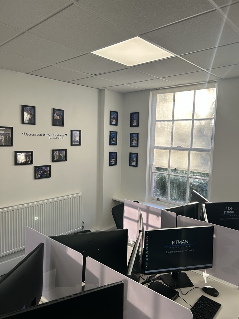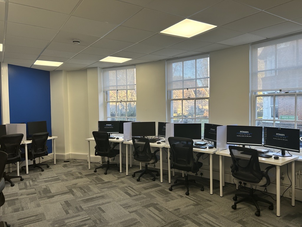Pitman Training Reading offers a modern learning environment with a dedicated team and state-of-the-art equipment for all your training needs. With distraction-free study areas, a specialised exam room, and a private room for 1:1 consultations, our centre provides the perfect space for a focused and supported training experience. Students can pop in during open hours, schedule a time with our Learning Coach for personalised guidance, and benefit from our CV clinics to prep for interviews and craft job-winning resumes.